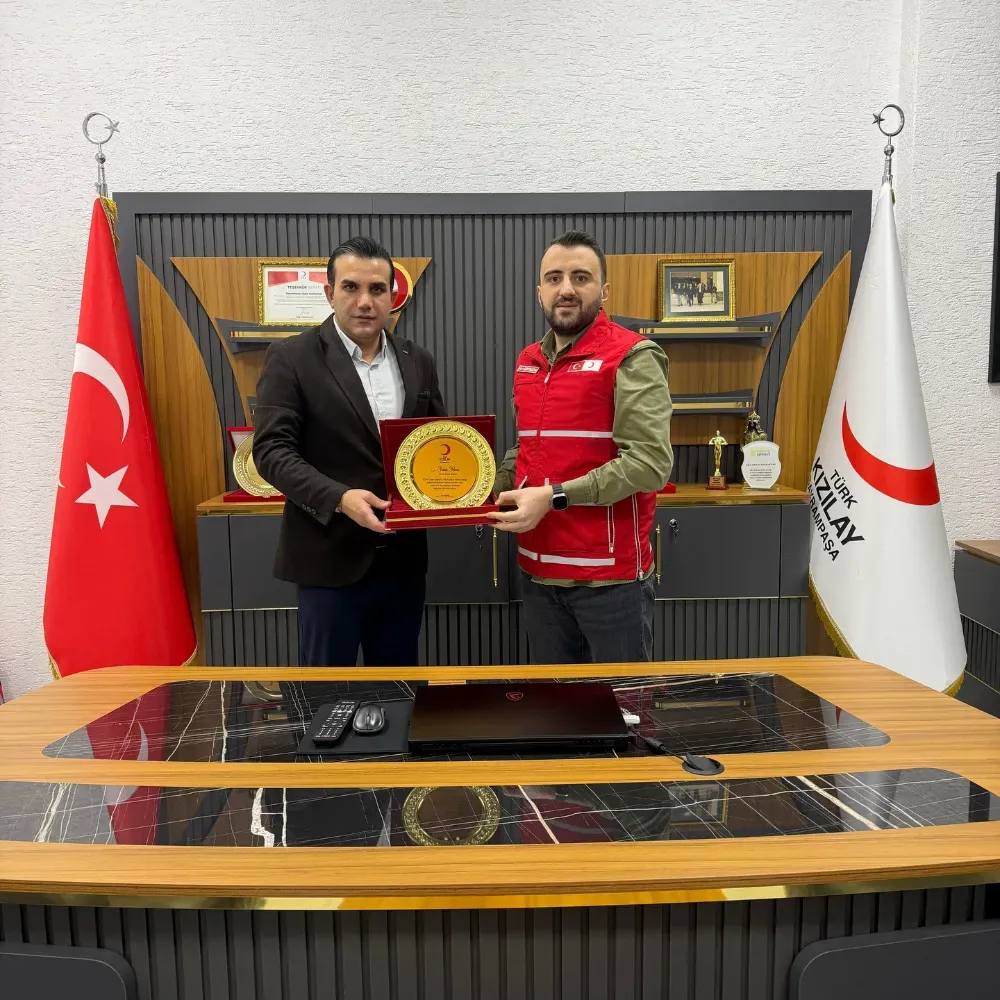 Türk Kızılay Bayrampaşa Şubesi, ISTAF (Uluslararası Bilim Düşünce ve Sanat Derneği) Genel Başkanı Dr. Yakup Yılmaz’ı misafir etti. Kızılay Bayrampaşa Şube merkezinde gerçekleşen ziyarette, Dr. Yılmaz’ın Gazze’ye yönelik sürdürdüğü insani yardım çalışmaları ve duyarlı destekleri gündeme geldi. Bölgeye sağlanan katkılardan dolayı duyduğu memnuniyeti dile getiren Kızılay Bayrampaşa Şube Başkanı Erkan Bayraktar, Dr. Yakup Yılmaz’a Kızılay Bayrampaşa şubesi adına bir teşekkür beratı takdim etti.