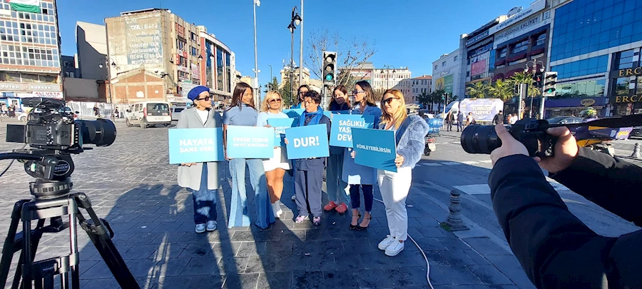 Sosyal Medyanın kadın fenomenleri, Gaziosmanpaşa Meydanında trafik ışıklarının kırmızı yandığı anda, rahim ağzı kanserinin farkındalık rengi olan mavi tonlarda kıyafetlerle yoldan geçen arabalara ellerindeki uyarı yazılarını göstererek dans etti.
